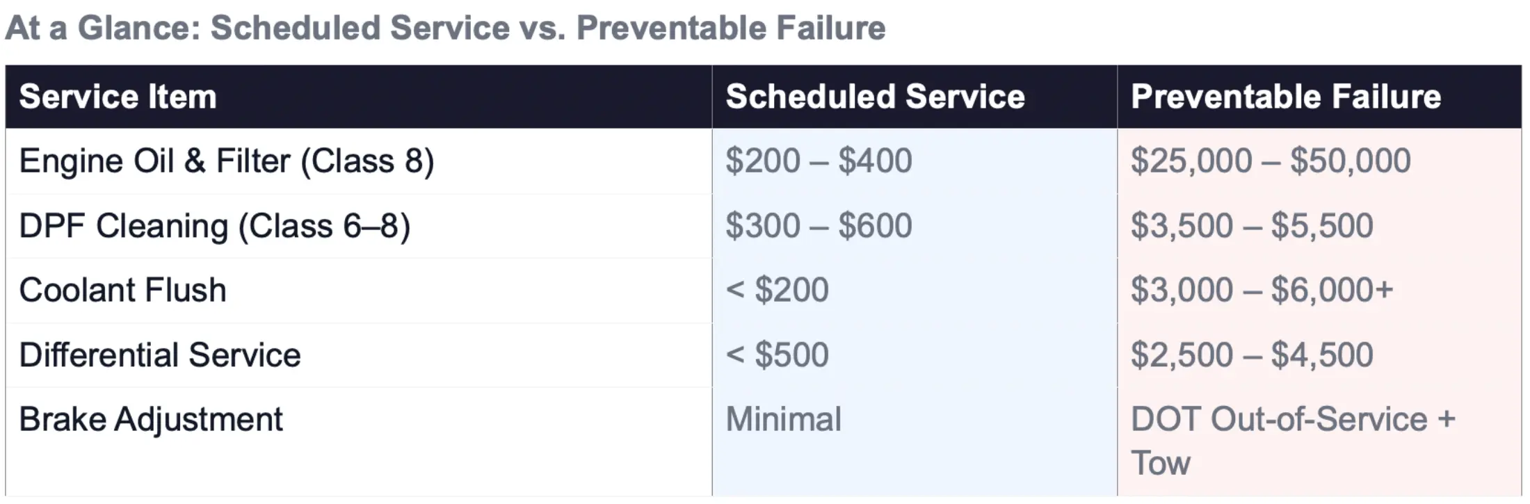At a Glance: Scheduled Service vs. Preventable Failure