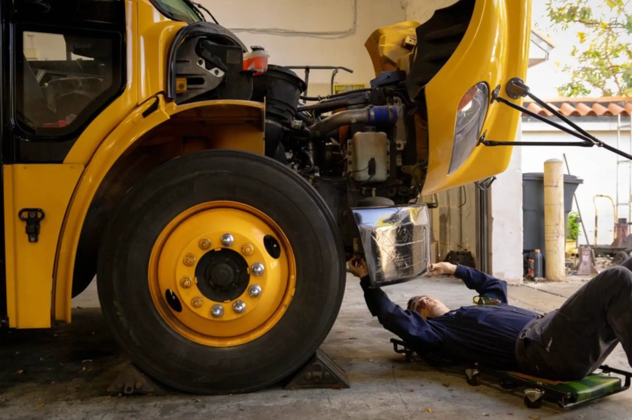 Underside inspection — brake and suspension checks catch issues before they become DOT violations.